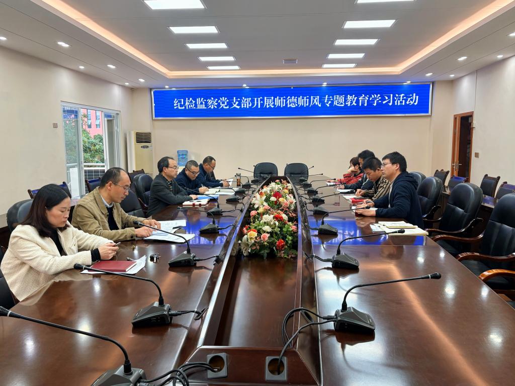 11月13日,纪检监察党支部在莲湖校区弘德楼四楼会议室开展师德师风专题教育和警示教育学习。驻校纪检监察组组长、党委副书记、纪委书记帅胤同志以普通党员身份参加学习并作指导,会议由田江同志主持。